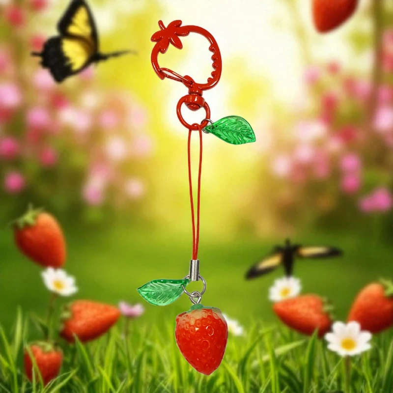🍓 آویز کیف زنانه مدل توت فرنگی – تزئین فانتزی و جذاب برای کیف شما